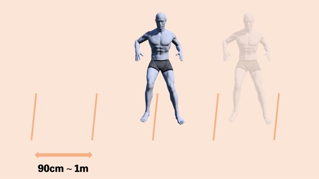 両脚ジャンプのサイドステップを連続で行いラインを跨いで移動