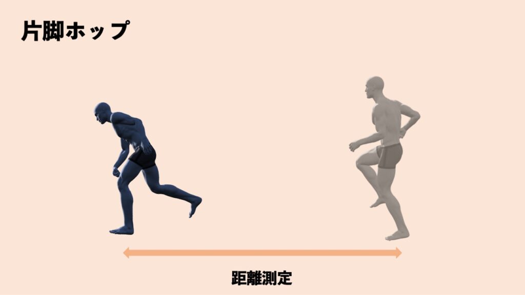 - 片足でできるだけ前方へ飛ぶ